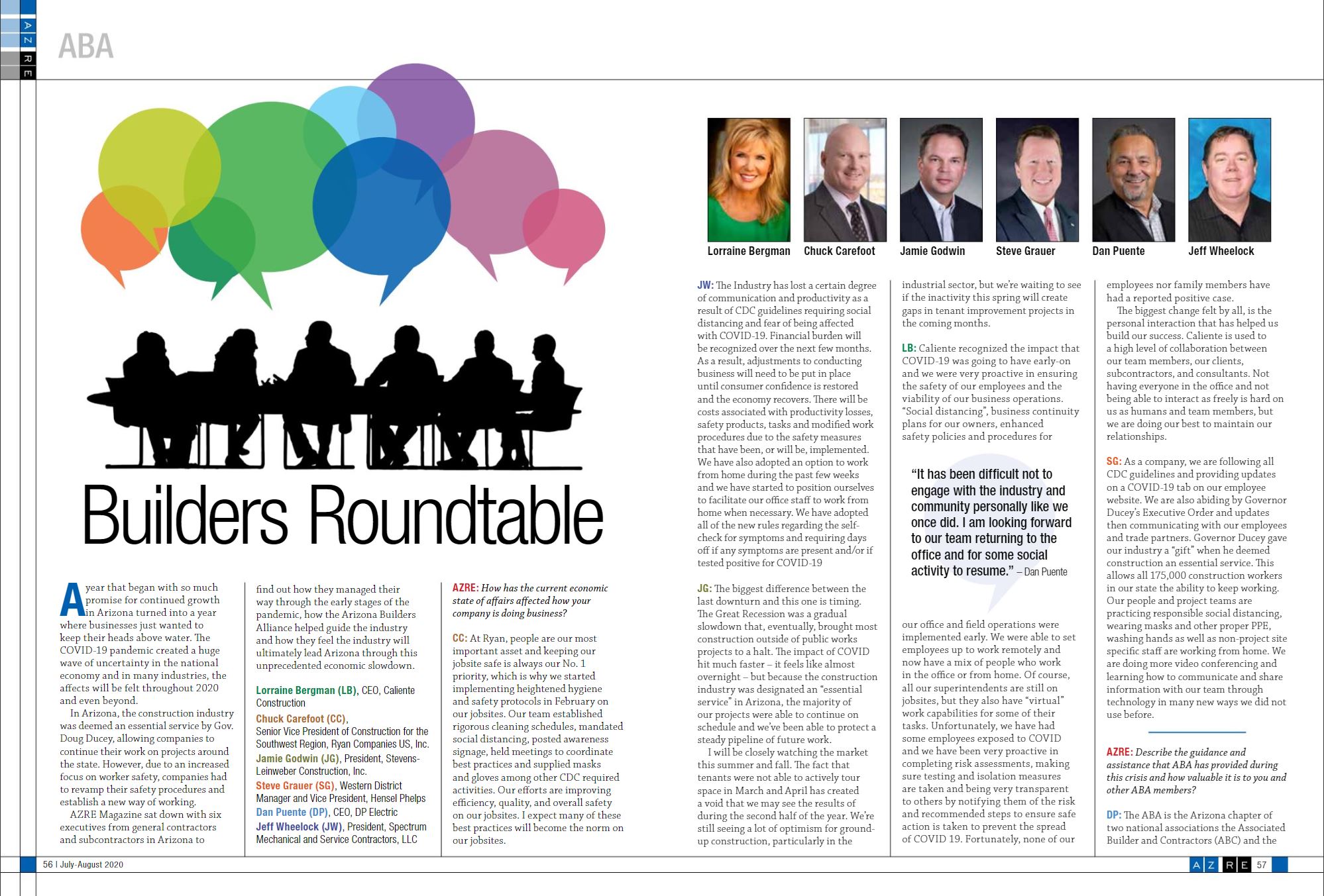 Lorraine Bergman, President & CEO of Caliente Construction, sat down with AZRE (Arizona Commercial Real Estate) and five other Arizona contractors to discuss the early stages of COVID. The group focused on how the Arizona Builders Alliance helped guide the construction industry and ultimately what they believe the industry will need to do to lead Arizona this through this unprecedented event.